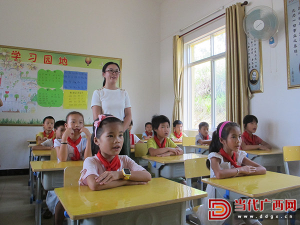 在钦州市钦南区久隆镇平新小学大坡坪教学点,孩子们跟着年轻的女教师一起唱歌。记者 范立强 摄