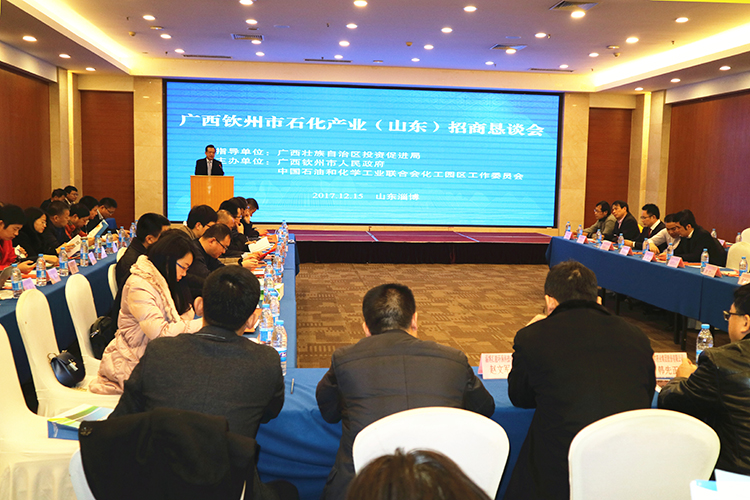 在山东淄博市举行的广西钦州石化产业(山东)招商恳谈会,吸引了四十多家石化企业到场。市政协副主席陆崇友、中国石油和化学工业联合会化工园区工作委员会秘书长杨挺、自治区投资促进局副巡视员梁艺分别致辞。市投资促进局、市石化办、钦州港区管委作招商项目推介。